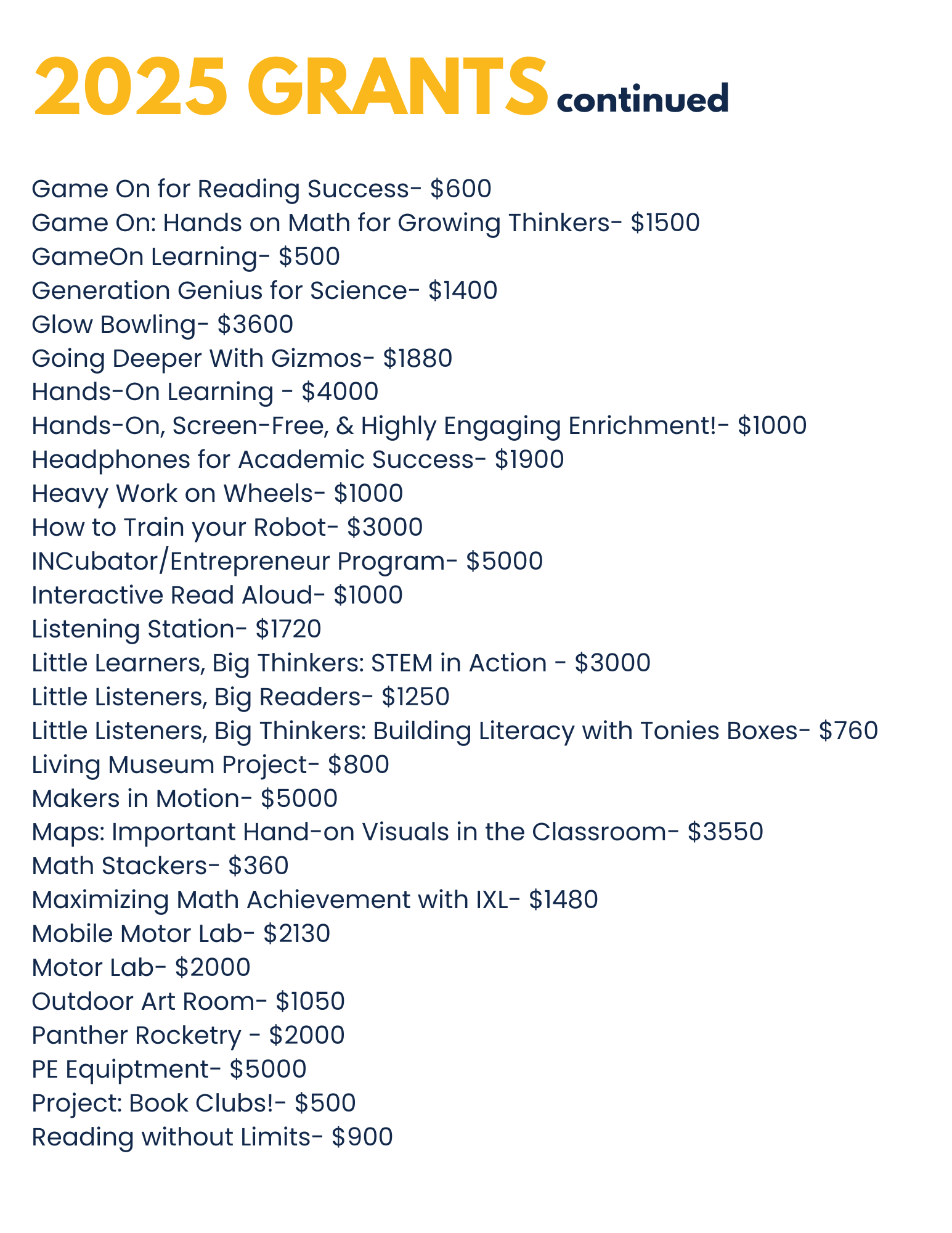 Check out our RECENT grant winners: